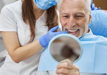 Reposição de dentes com fixação segura e natural. Inclui soluções como a prótese protocolo, ideal para quem perdeu todos os dentes.